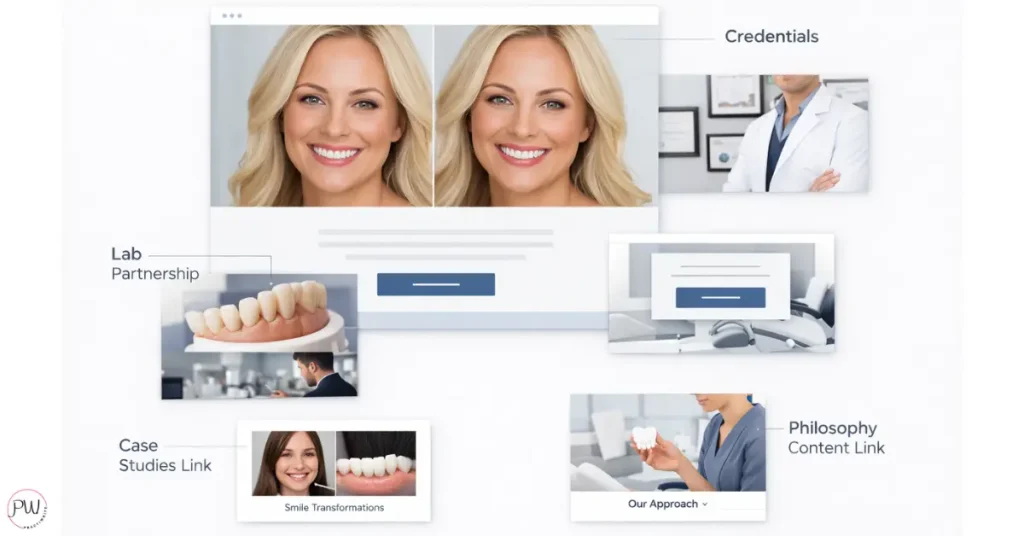 Smile makeovers. Full-mouth rehab. Full-arch implants. These are your highest-value pages.