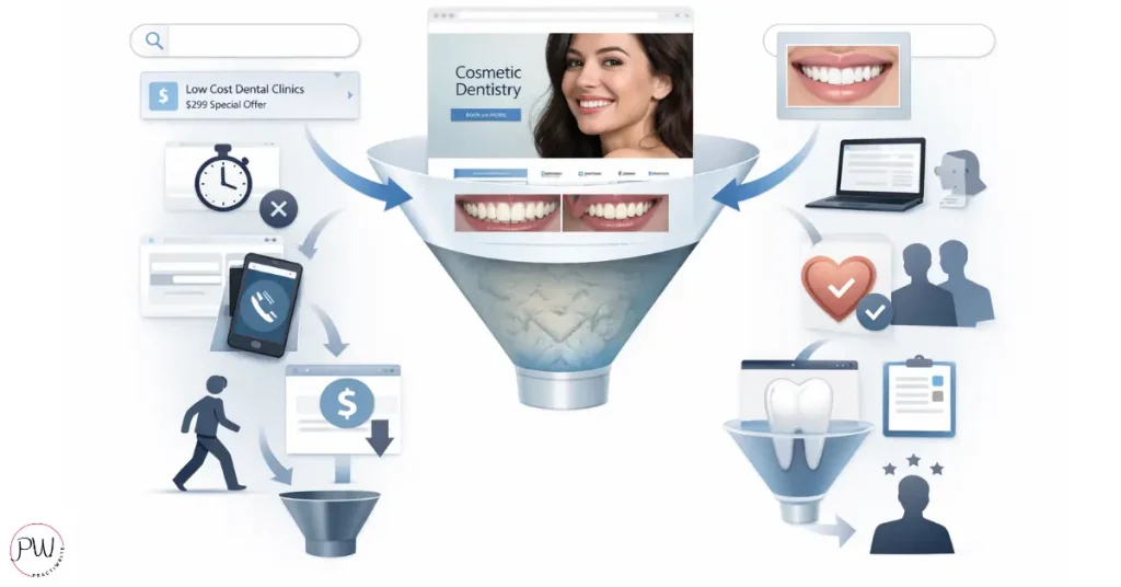 Right now, most FFS practices are doing the filtering backwards. They’re repelling the high-value patient with PPO language, generic photography, and “call for pricing” CTAs.