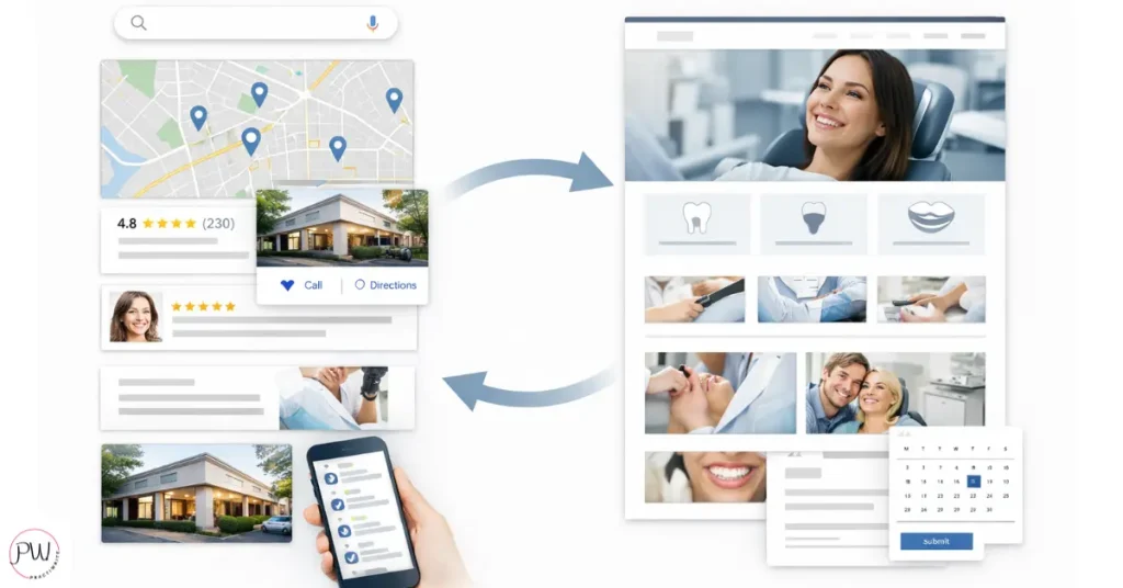 Most practices treat them like two unrelated projects. They’re not. They’re two doors into the same room, and if one is locked or the signage is wrong, you’re losing patients who were already looking for you.